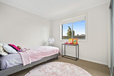 On the other side, a cozy yet functional layout awaits, comprising two bedrooms tailored to the needs of smaller households or rental tenants. A thoughtfully designed bathroom and single car garage complete this dwelling, ensuring comfort and practicality.